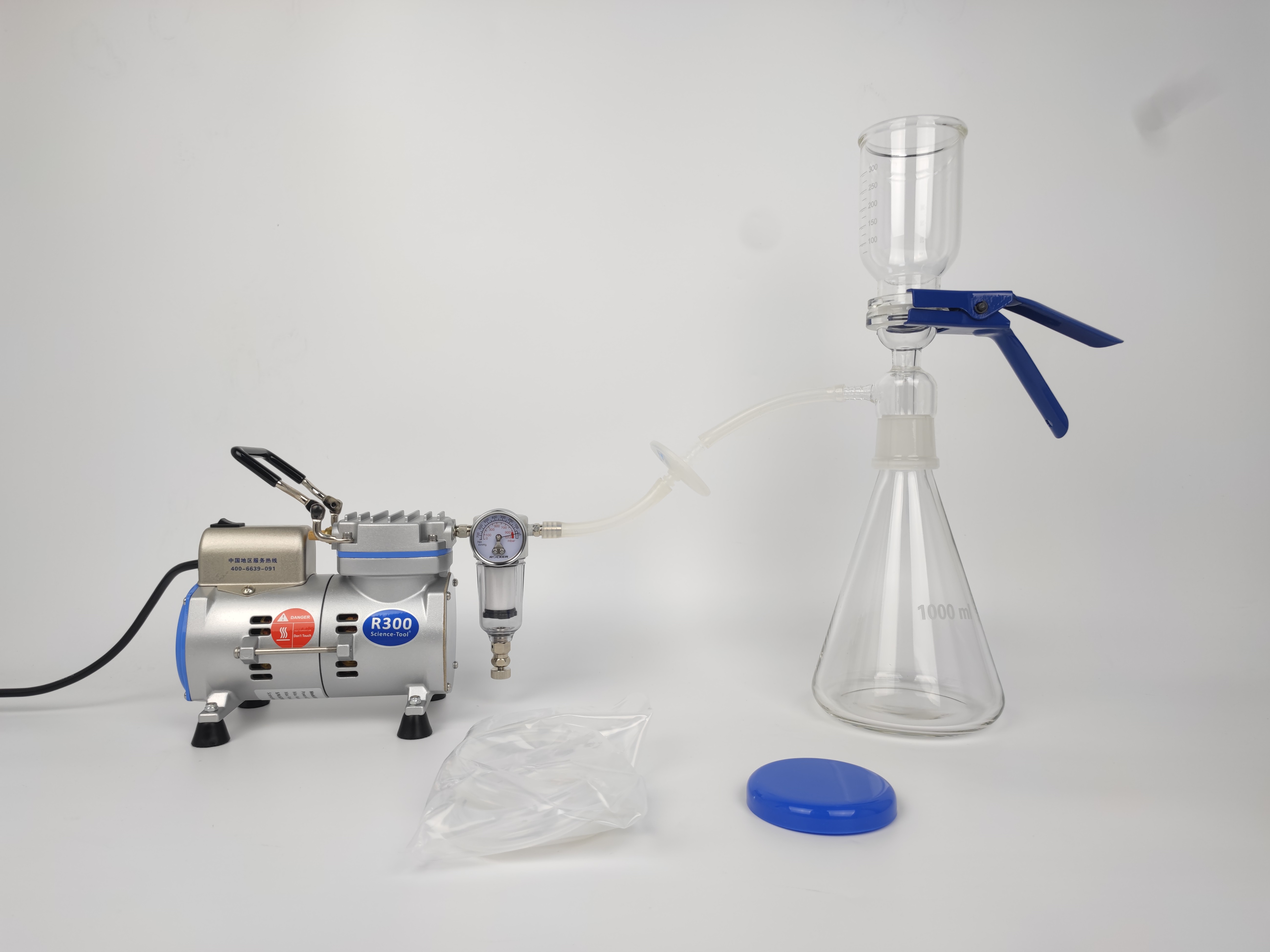 土壤經浸提劑(如DTPA、CaCl?溶液)振蕩后,液體中含有大量微細土壤顆粒和膠體。直接分析會損壞儀器、干擾結果,顆粒物負荷高,極易堵塞濾膜。由于浸提液是各類溶劑,需要考慮化學兼容性的問題,所以仍然推薦使用通用性強的砂芯玻璃真空過濾器,比如R300E系列真空抽濾裝置,能夠提供4款不同容量規格過濾瓶組,可以按需選擇。